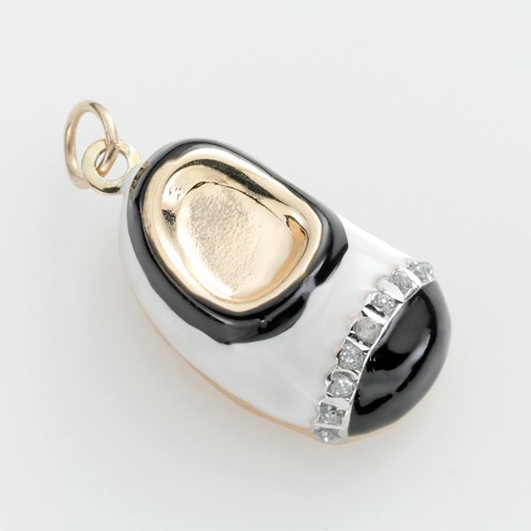 14 karat white gold. All items are authenticated through a rigorous process overseen by experts. Personalize with your choice of engraving on each shoe. 14K Retro Baby Shoe Bootie Sneaker Pearl Mike CharmPendant Yellow Gold CQXP M. The Sterling Silver Enamel Baby Shoe Diamond Pendant is a playfully pretty yet seriously striking adornment in the likeness of an adorable baby shoe. The shoe charms are available in 10- 14- and 18-carat gold. Find the perfect diamond necklace at Romante. View this item and discover similar for sale at 1stDibs - Aaron Basha 18K white gold black enamel baby shoe charm with diamond bow pave set with full cut round diamonds G. Giving the gift of a beautiful Diamond Baby Shoe Charm pendant is a wonderful way to celebrate the birth of a new child or the thrill and satisfaction of raising a youngsterDiamond Baby Shoe Charms can be worn not only as pendants but as charms on bracelets or anklets too.